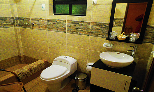 El baño amplio y luminoso, con ducha y agua caliente (terma solar) donde encontrara accesorios de higiene personal. Una habitación con dos camas individuales, ventana grande, armario amplio. Entrada y salida a los jardines.